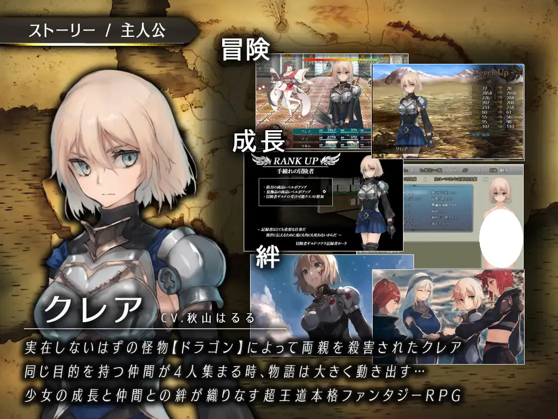 这一个超王道正统奇幻故事,由为了替父母复仇的少女克莱尔的成长,以及她与伙伴之间的羁绊所交织而成。