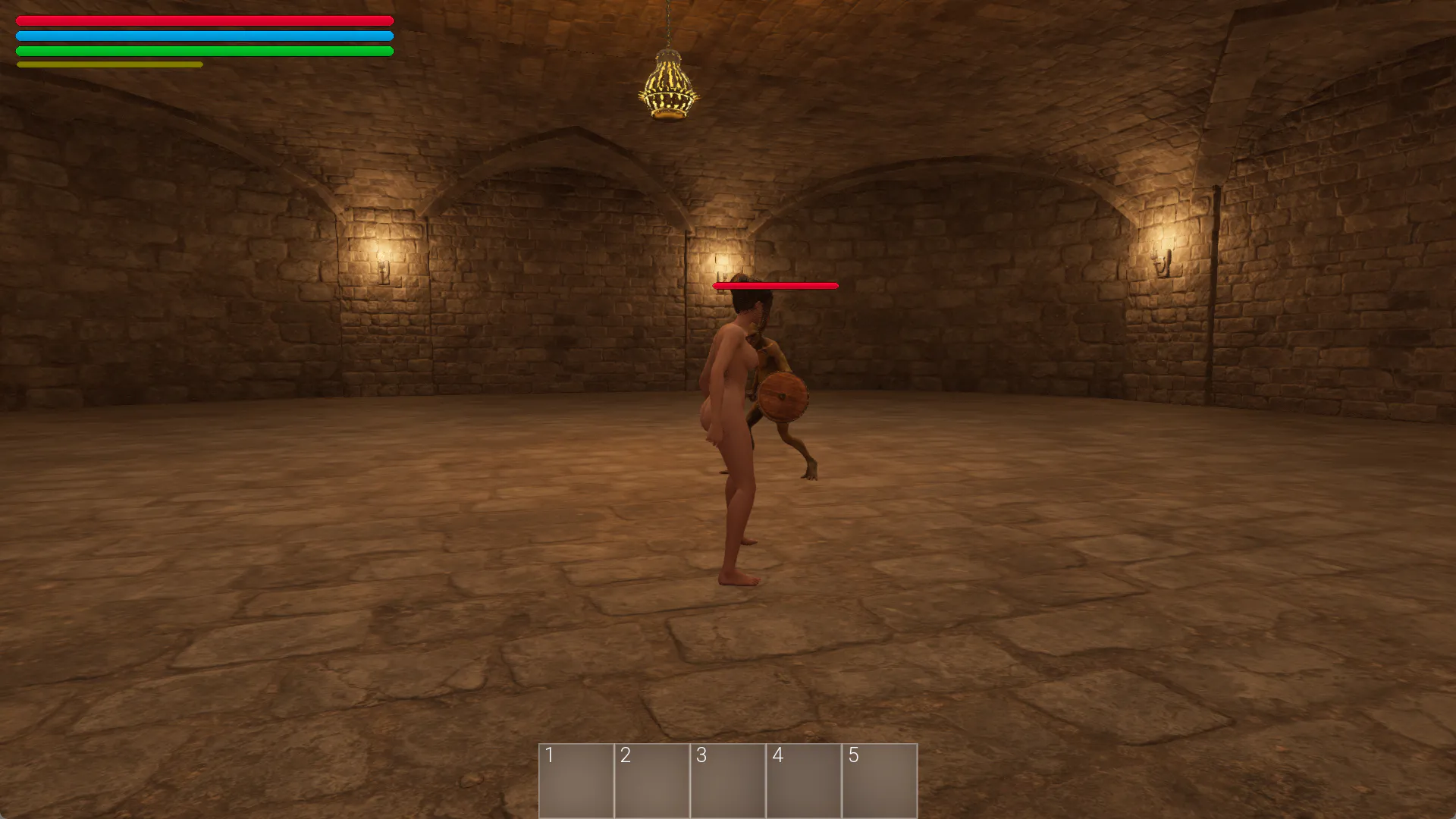 奴隶○探索地牢的深渊。 你成了俘虏,在地牢的深处醒来。 请利用所有可用的东西,攻略地牢的深渊吧。 从拘束具中逃脱的话就会变成以战斗为主的游戏玩法,被捕获成为奴隶○的话就会切换到 R18 的游戏玩法。 战斗 游戏玩法 ○类魂系○ 这款游戏是类魂系游戏。需要根据敌人的行动和技能改变应对方式,一瞬间的判断失误就意味着死亡。