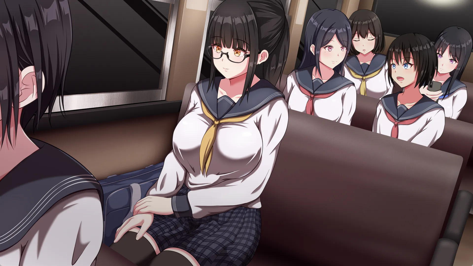 怀着挥之不去的邪念坐上巴士后,竟与少女并排而坐。 狭窄座位上紧贴的肩膀、随车身震动摇晃的胸脯、隐约飘来的肥皂香气…已经无法忍耐了!