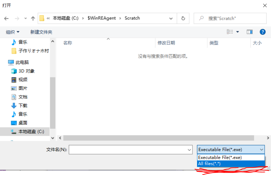 默认只显示.exe,如果看不到要找的文件可以在右下角Executable File(*.exe)处将选项改为All files(*.*)。